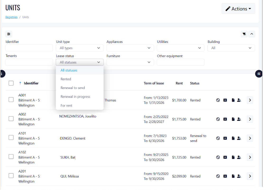 - Use the Lease Status dropdown filter to show only relevant rental statuses