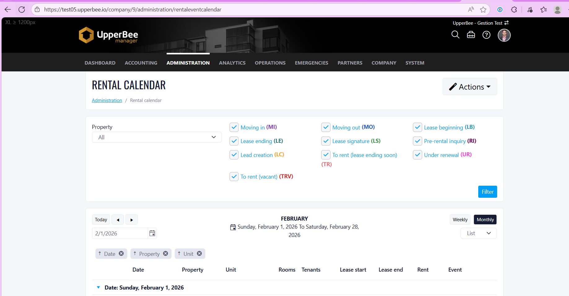 - Display of the lease period for each unit, including start and end dates.