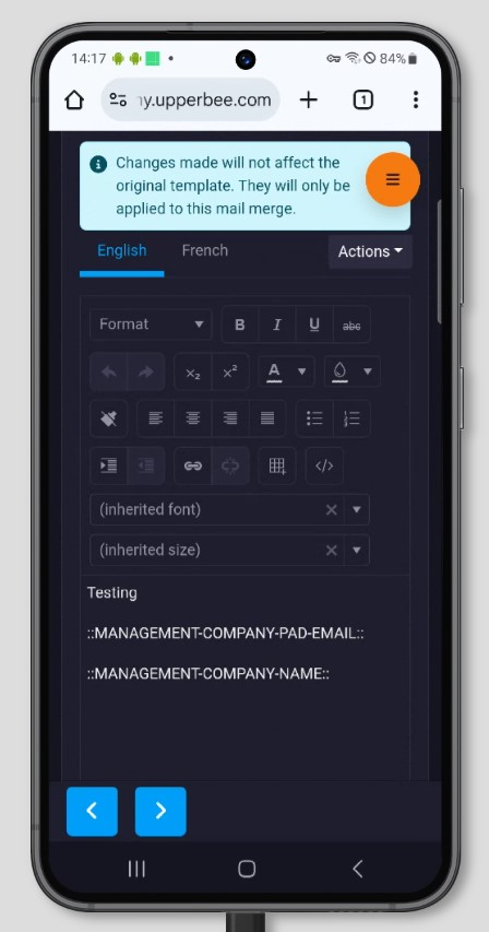 - The second step of the mail merge workflow, where users can modify the selected template