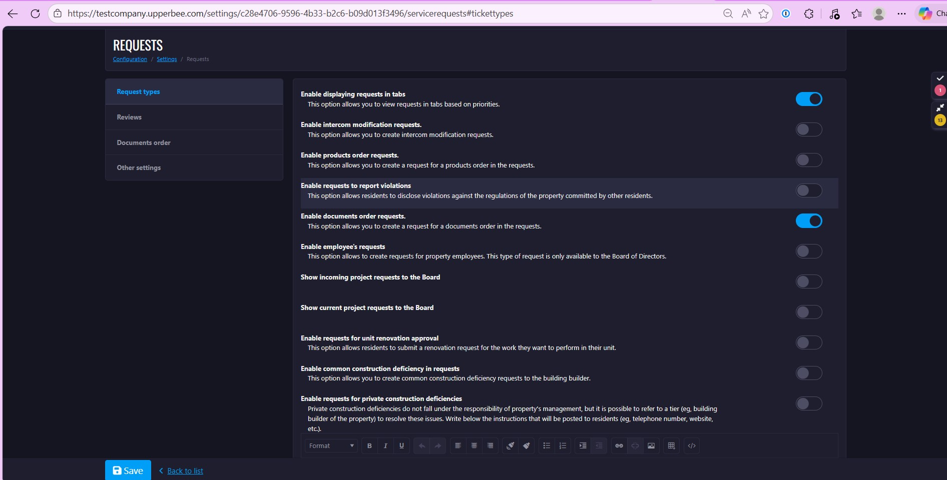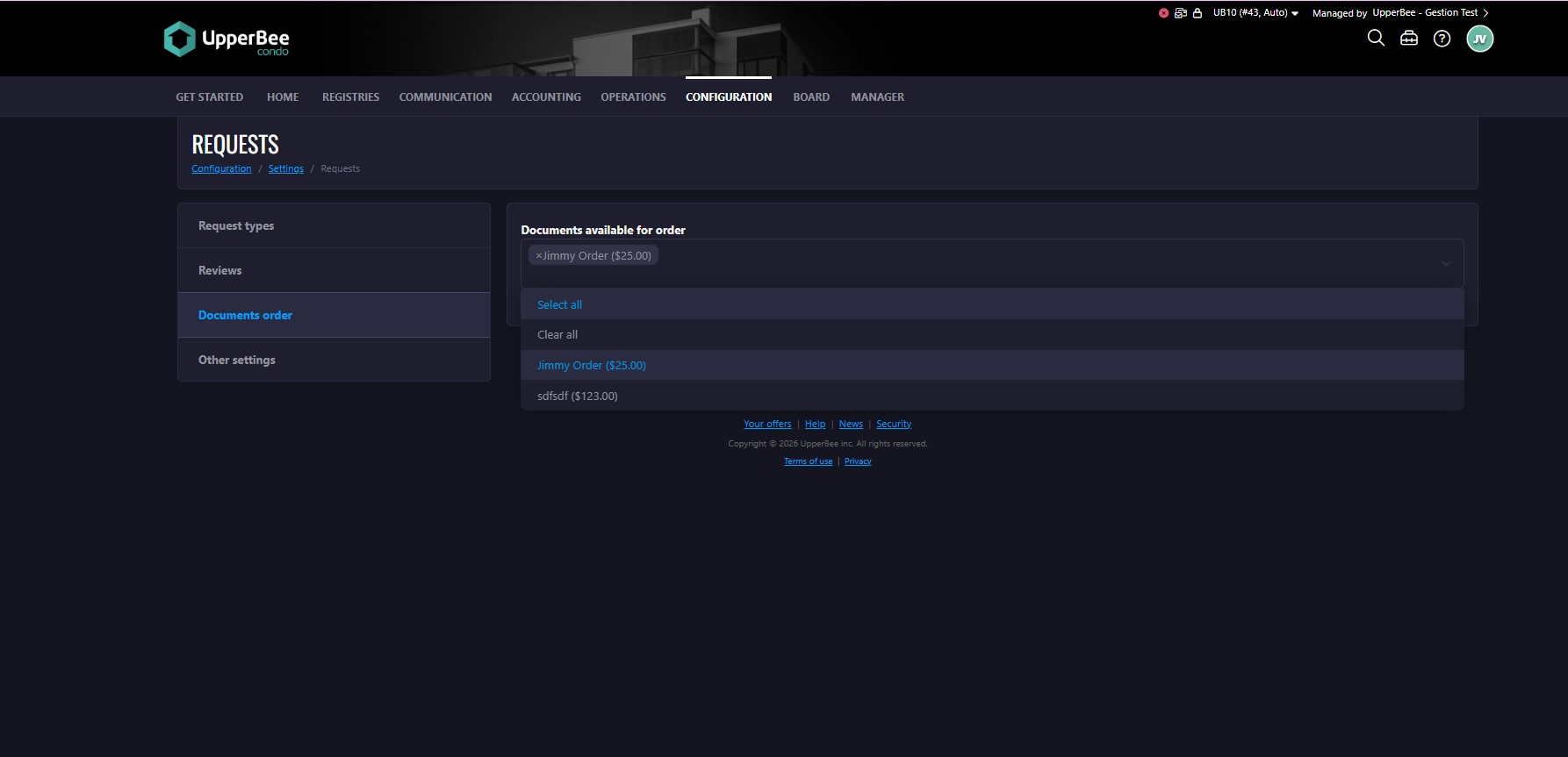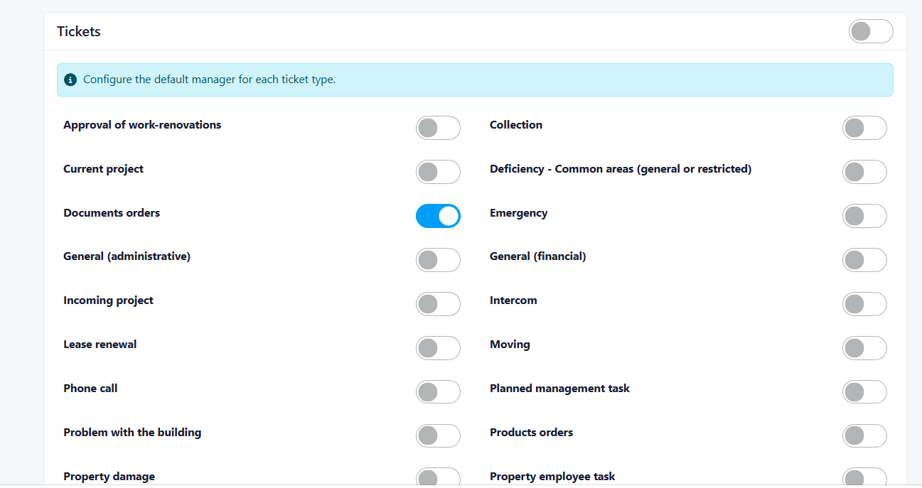 - Select which documents should be available for that specific property.