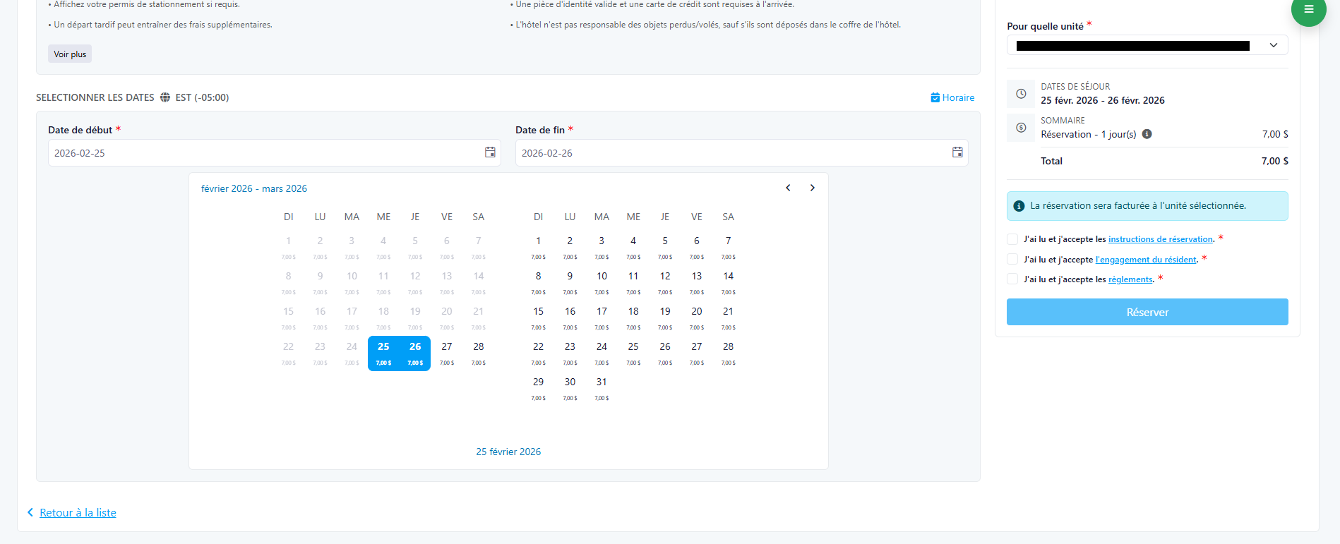 • Paiement par carte de crédit ou facturation au condo (si activée)