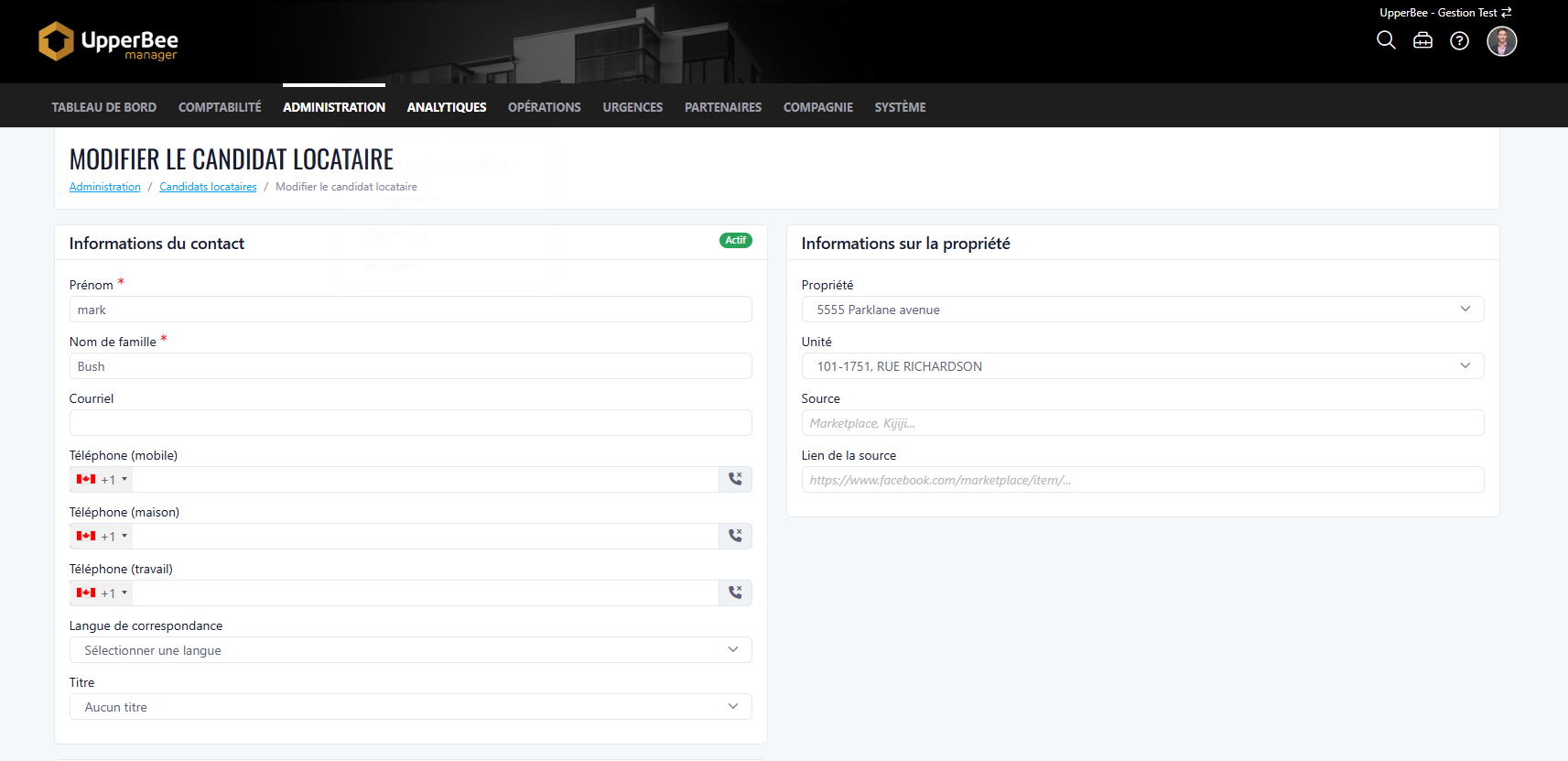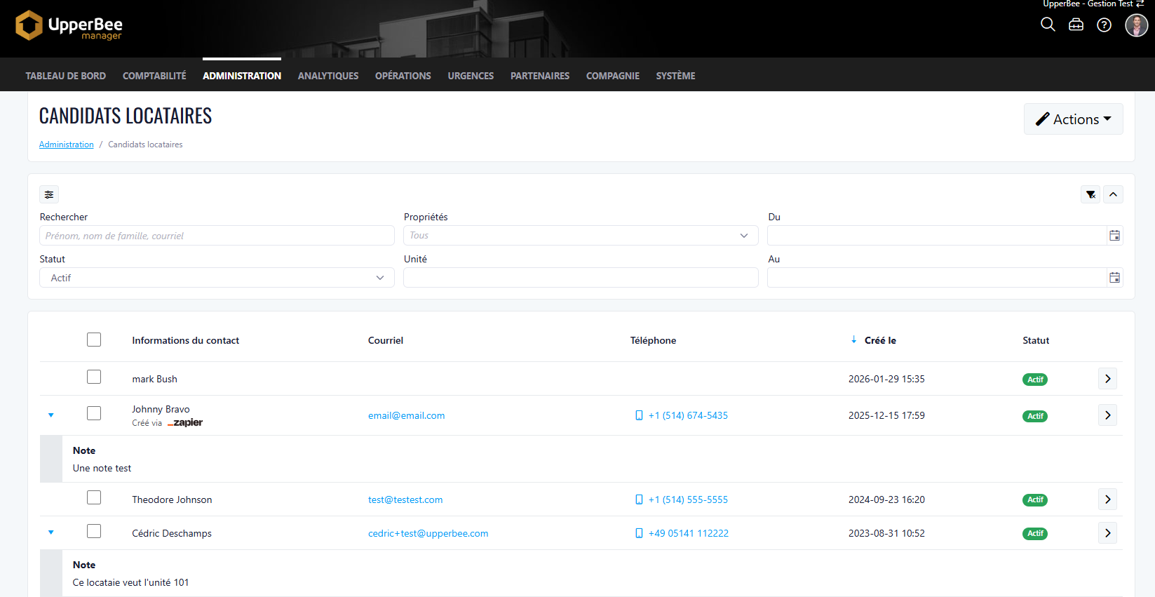 La fonctionnalité de gestion des candidats locataires est maintenant disponible au niveau propriété, permettant aux équipes sur le terrain de gérer directement leurs prospects, sans passer uniquement par le niveau compagnie.