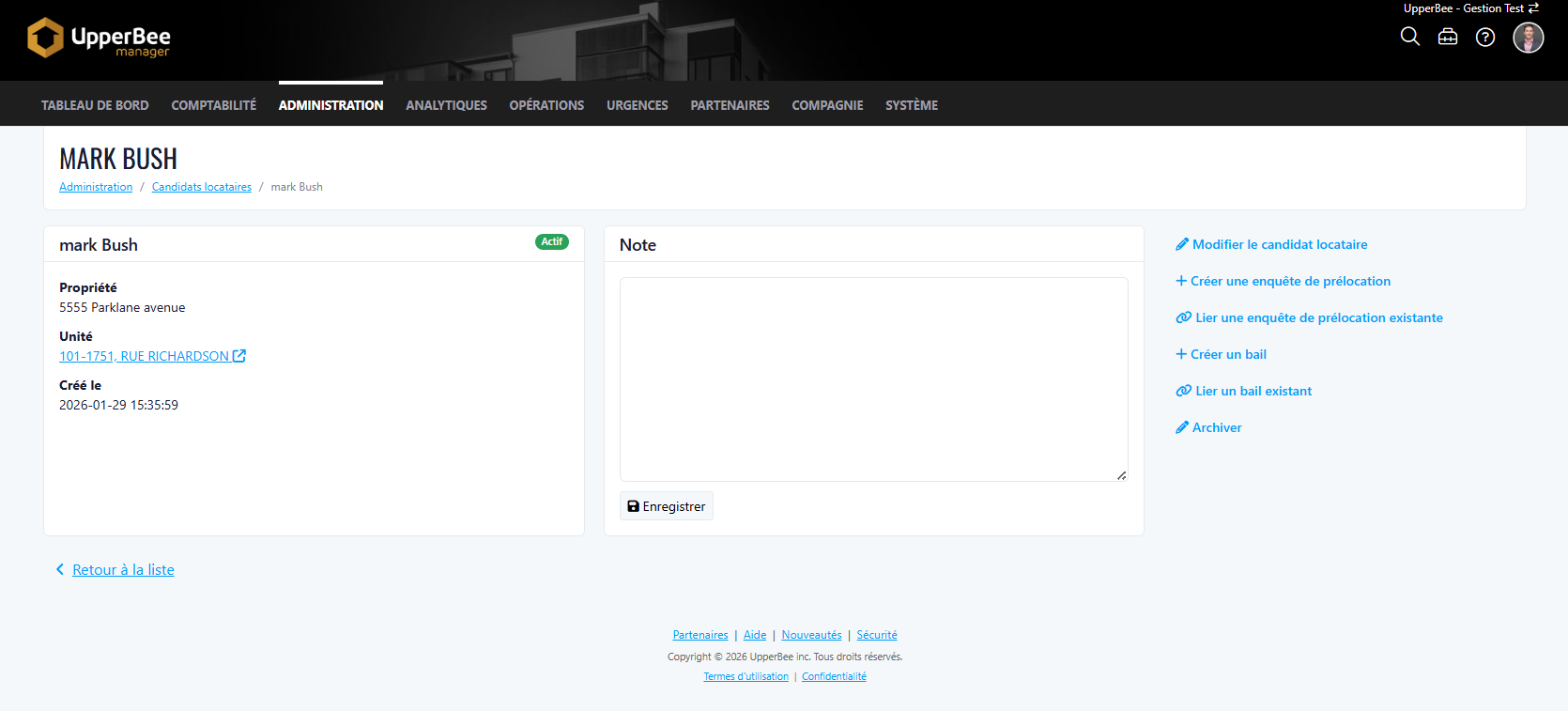 Les candidats locataires peuvent désormais être consultés et gérés directement depuis une propriété, pour un flux de travail plus simple et plus efficace.